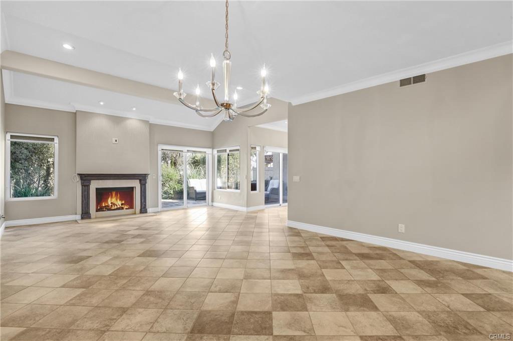 The landscaped backyard is a true oasis, with Olive trees illuminated by ambient night lighting, a custom-built bench that complements a fireplace crafted from the remains of an antique French fountain, & a BBQ grill, creating the perfect setting for entertaining guests.